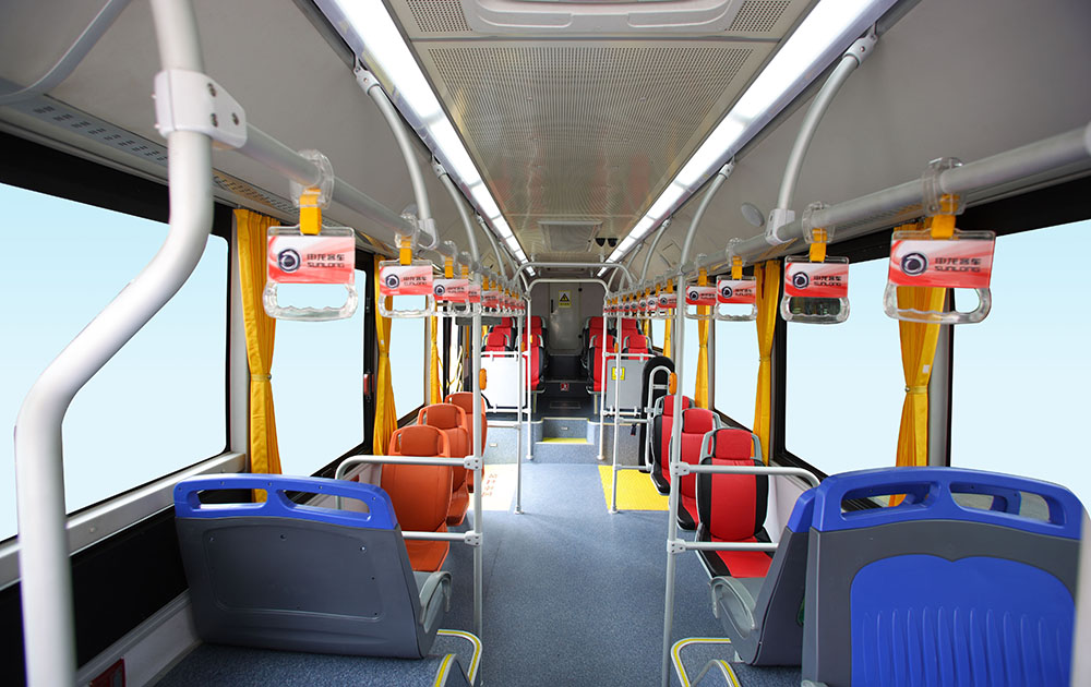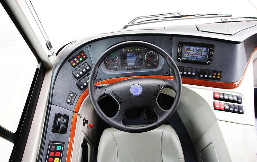 整車低地板設(shè)計,配備ECAS懸架系統(tǒng),駕駛區(qū)安裝氣囊減震座椅、全液晶儀表,小型智能嵌入式投幣機(jī),一體式司機(jī)包圍結(jié)構(gòu),提高駕乘舒適性和安全性;